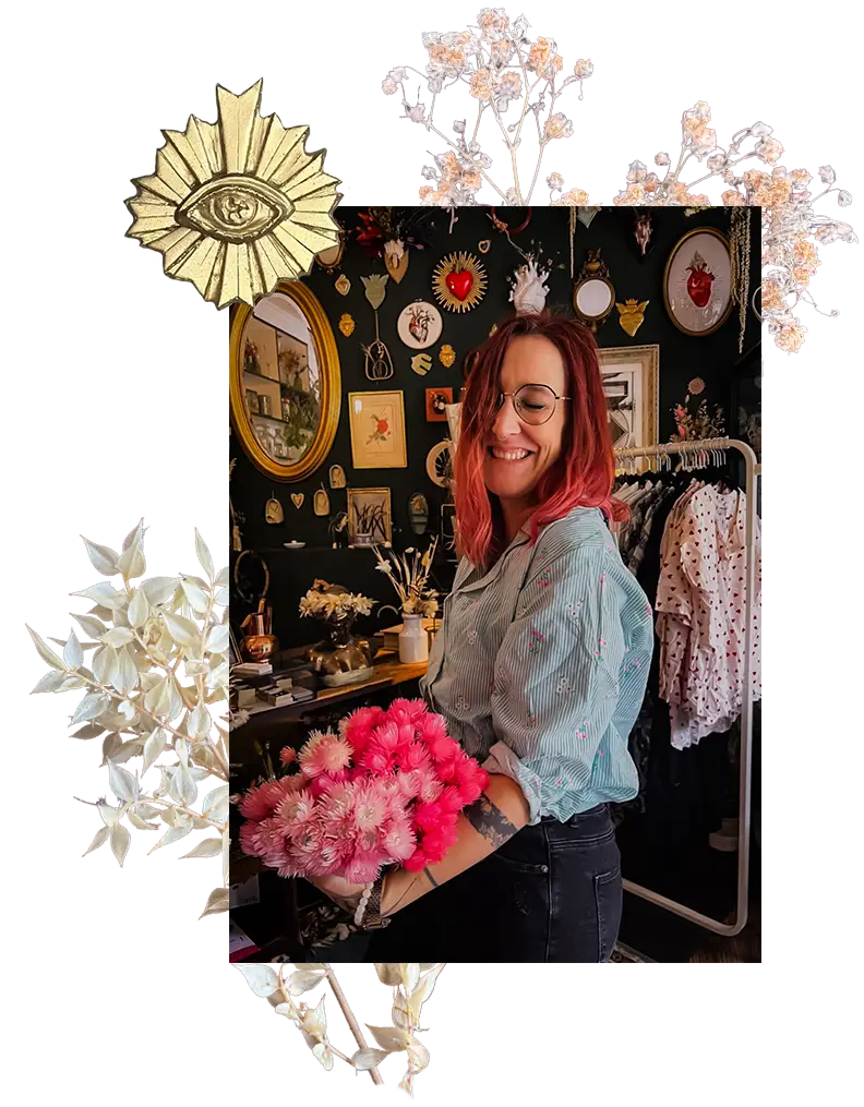 Un lieu atypique, où les créations florales et végétales côtoient des objets chinés et détournés, des meubles coups de cœur, de la récup, des pièces « home-made » en céramique et quelques pépites imaginées par des artisanes et créatrices de la région: cartes de vœux, oracles, bijoux, illustrations…